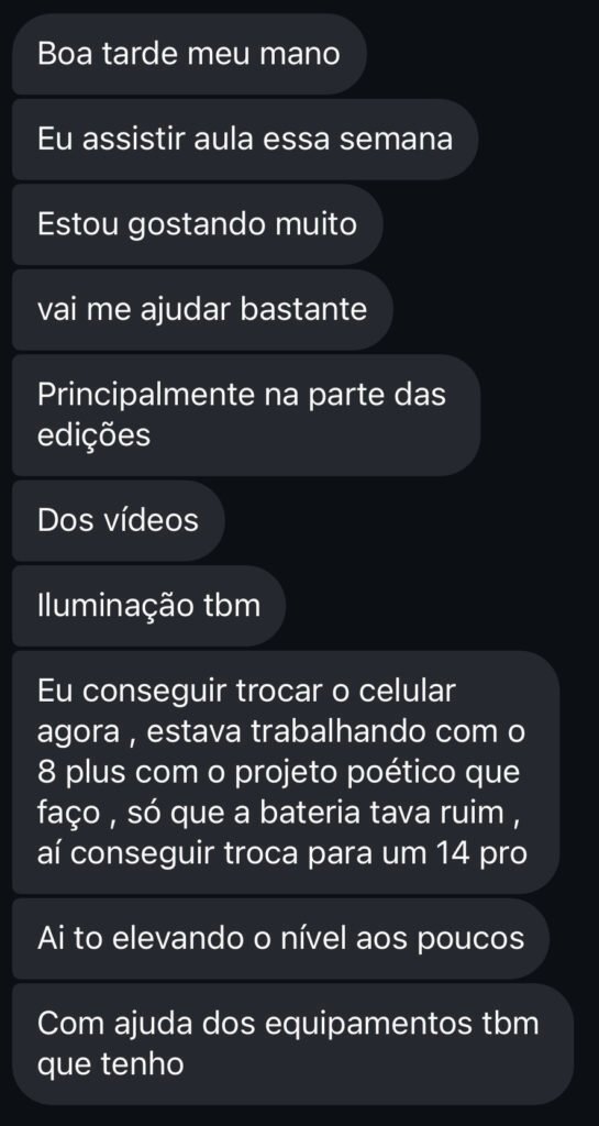 Ao aprender com quem está no campo de batalha todos os dias, você ganha insights valiosos e uma visão prática que faz toda a diferença na sua jornada como videomaker.